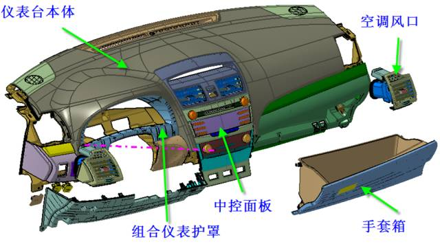 主要包(bāo)括主儀表台(tái)總成、儀表台管梁總成、副儀(yí)表台總成。